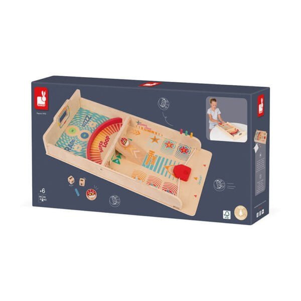 Come si diventa campione di dischetti? È semplice, usa l’elastico per dirigere e lanciare il dischetto nelle diverse zone colorate con l’obiettivo di ottenere il massimo dei punti o lasciandoti guidare dalla fortuna! Questo gioco va bene per tutta la famiglia perché ha diversi livelli di difficoltà. Livello 1: ogni giocatore deve accumulare il massimo di punti in 10 lanci. Livello 2: il giocatore lancia i dadi che indicano il numero di punti da raggiungere in un numero minimo di lanci! Per essere il migliore, dovrai mirare bene, evitare gli ostacoli e completare il super tiro nella finestrella in fondo per ottenere gli ambiti 100! Ci piace per lo stile! Legno naturale, illustrazioni colorate e dischetti che equipaggiati con il loro casco più bello per guadagnare velocità con classe! Questo gioco sviluppa la concentrazione e lo spirito di competizione, oltre che il senso della strategia. Un sacchetto di cotone permette di conservare tutti gli accessori: 2 dischetti, 2 dadi e paletti colorati per segnare i punti partita. Per perfezionarti, leggi il libretto con le regole del gioco per principianti ed esperti! Questo gioco è certificato FSC® (legno proveniente da foreste gestite in modo sostenibile).