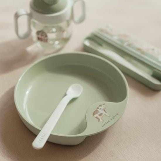 Il set di stoviglie per bambini Little Farm di Mepal Mio insegna al tuo bambino a mangiare e bere in modo indipendente. Il set è composto da una tazza anti-rovesciamento, un piatto di pratica e un cucchiaio di pratica. Ciò che è bello di questi prodotti è che sono adatti alle manine dei bambini piccoli, possono sopportare un buon colpo, sono leggeri e lavabili in lavastoviglie.